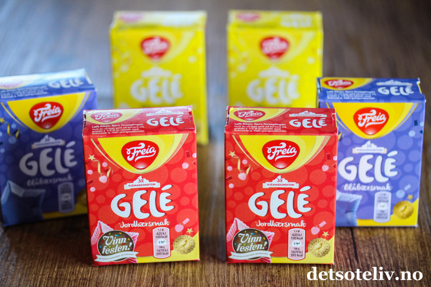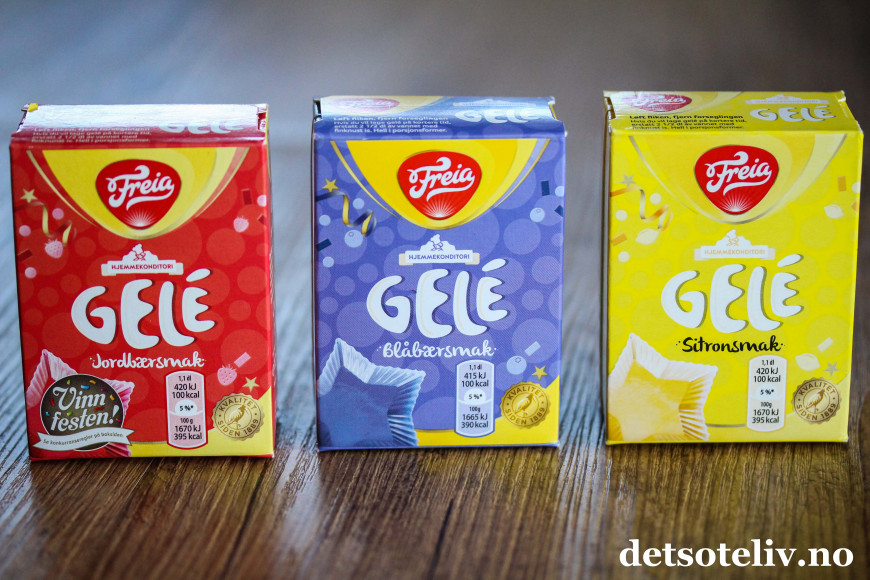 ♥ Til denne oppskriften trenger du 3 pakker gelé. Jeg bruker disse variantene fra Freia:
