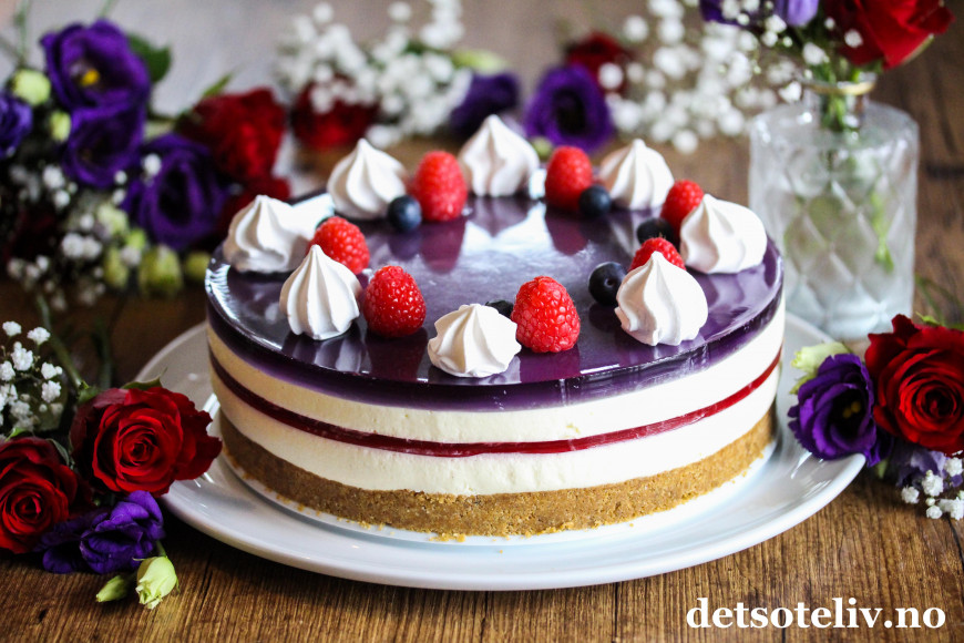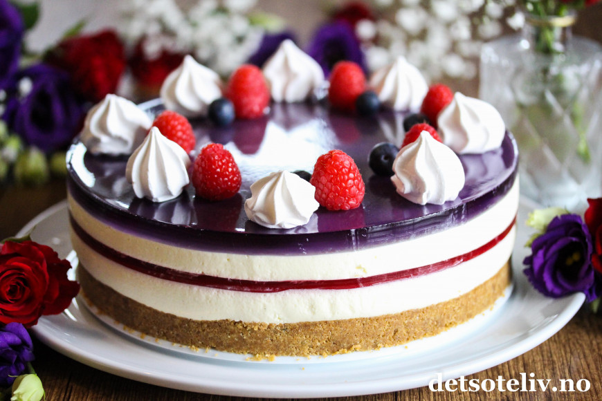 Denne kaken er så kul til 17. Mai! Laga den i fjor med blåbær i midten, det ble veldig godt - så satser på å gjøre det samme i år igjen! Legger bare et lag med blåbær over det stivna ostefyllet før jeg heller over blåbærgeleen. Anbefales!
