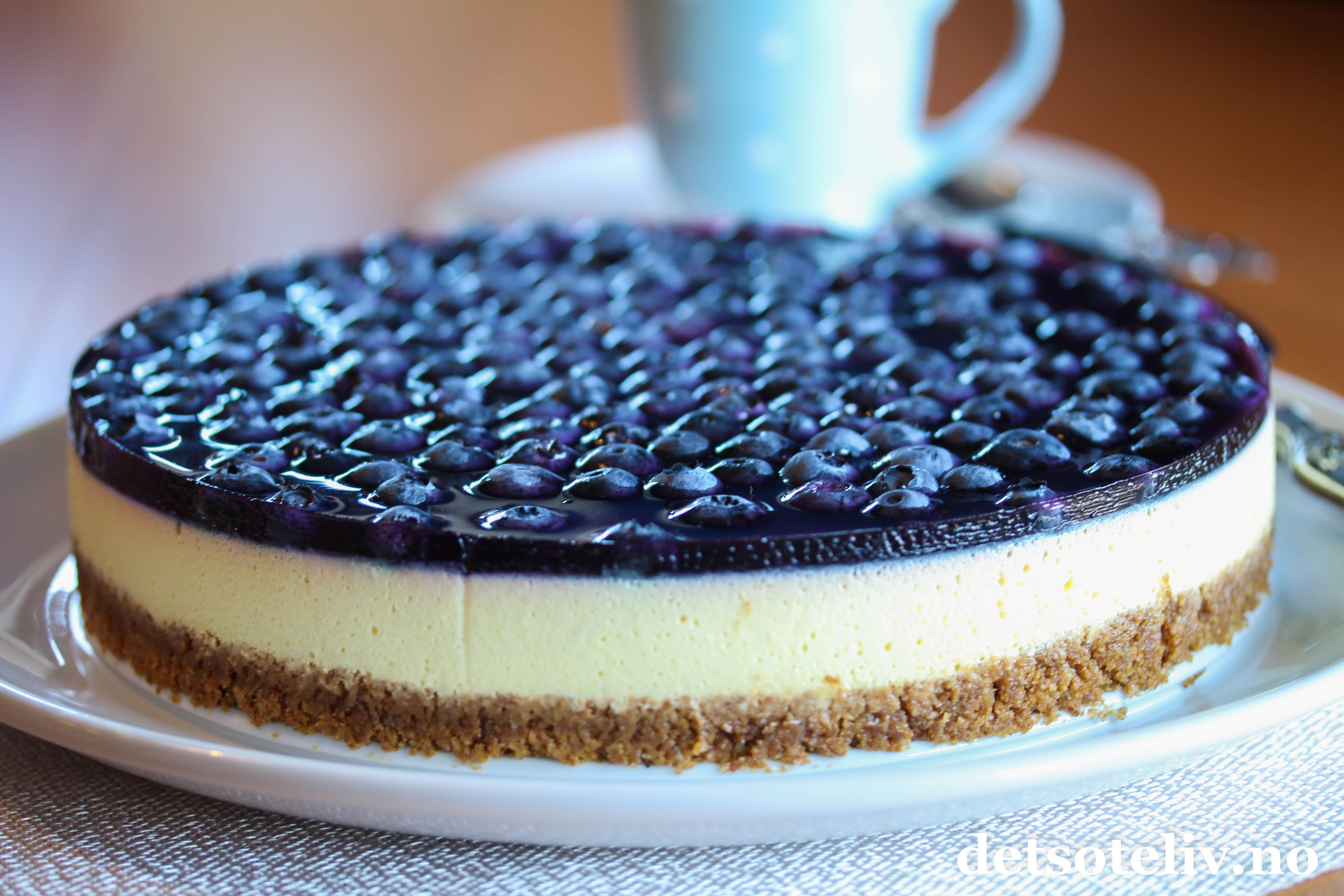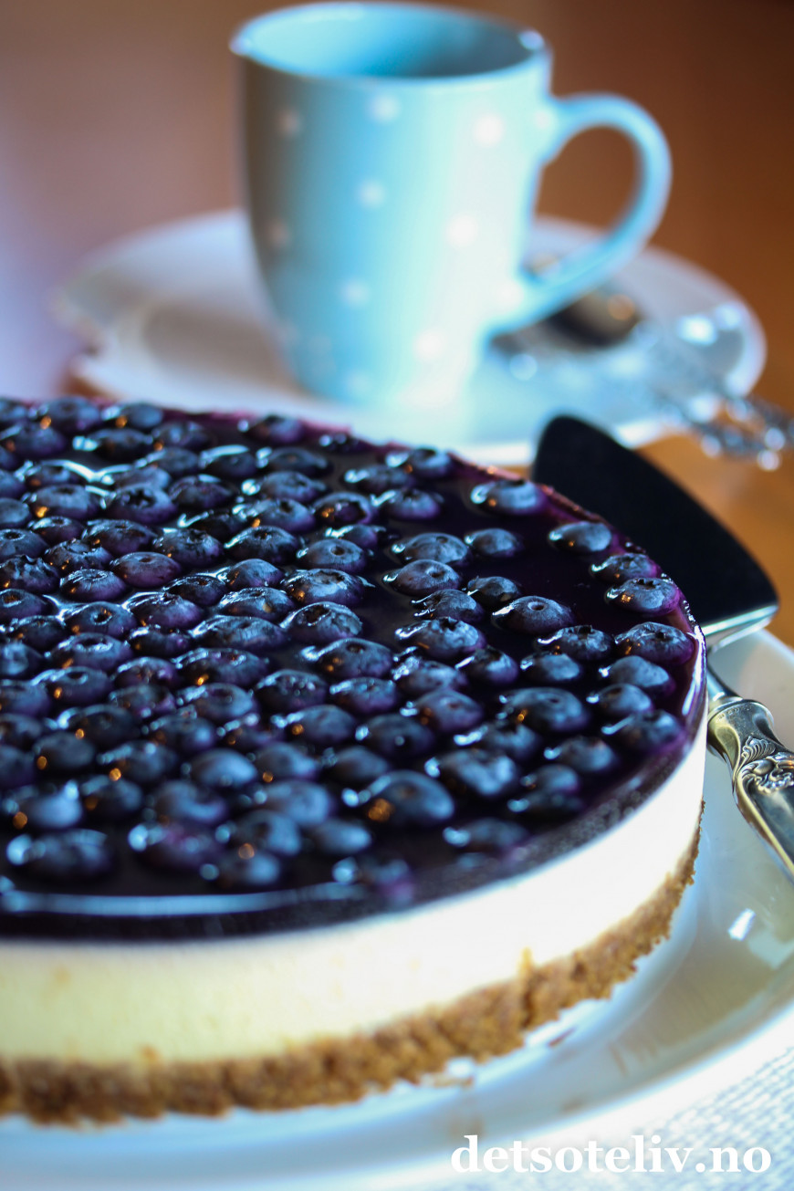 En ostekake er aldri feil.. Denne blir ekstra god med litt kanel i kjeksbunnen og blåbærlokk på toppen!
