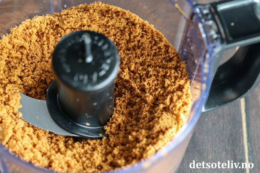 Ha kjeksene i en food processor og kjør dem til smuler.