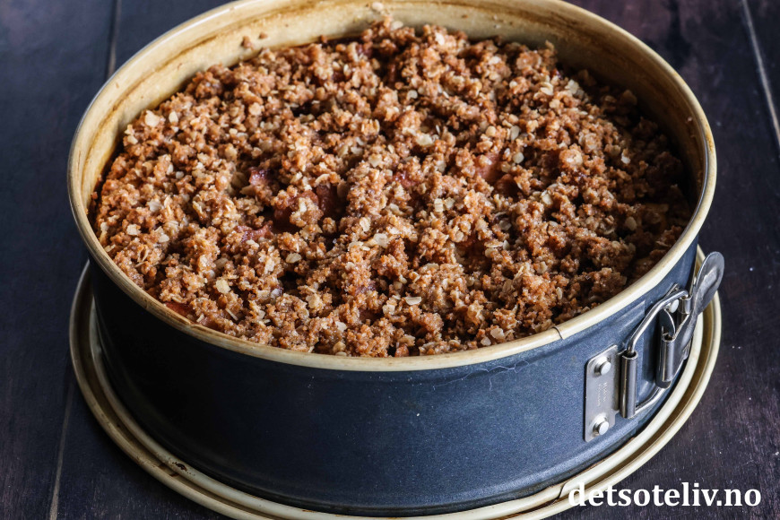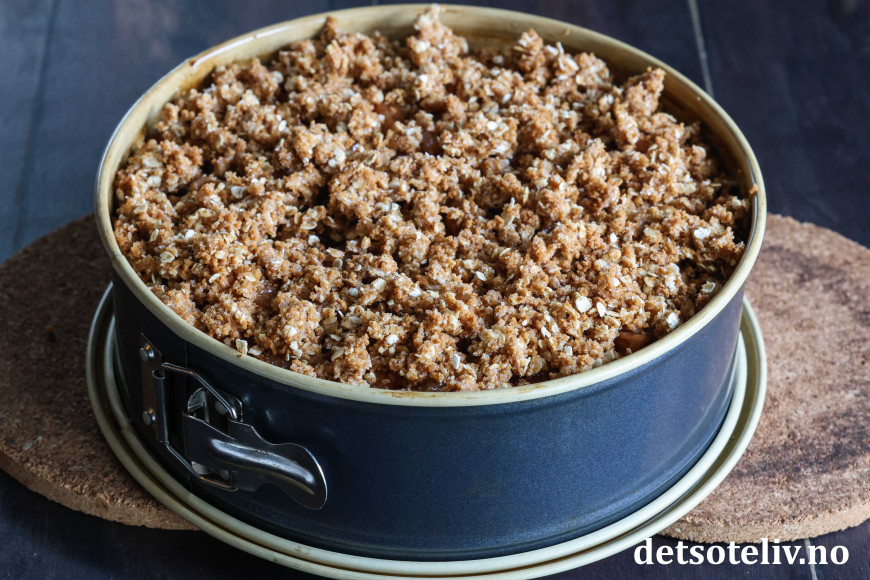 Mens ostekaken steker, kan du tilberede eplefyllet og smuldretoppingen.