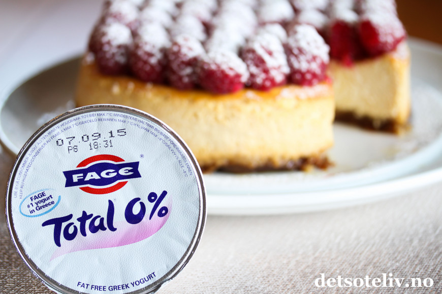 Gresk yoghurt er et fantastisk flott produkt! Yoghurten kjennetegnes av tykk og kremete konsistens, samtidig som at den er mye magrere enn for eksempel rømme. Her har jeg laget en kjempedeilig ostekake, der mye av kremosten er byttet ut med gresk yoghurt. Det gir en ostekake som du kan spise med langt bedre samvittighet!