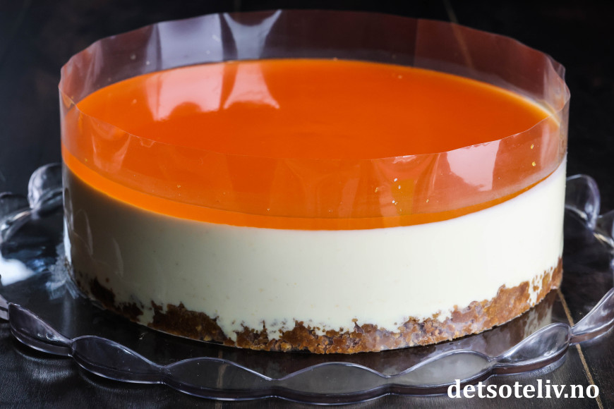 ♥ Du trenger 3 saftige appelsiner til denne oppskriften. Til ostefromasjen bruker du 3 ss fint revet appelsinskall, som vil si revet skall fra 3 appelsiner. Mål opp 2 dl presset appelsinsaft til gelélokket.