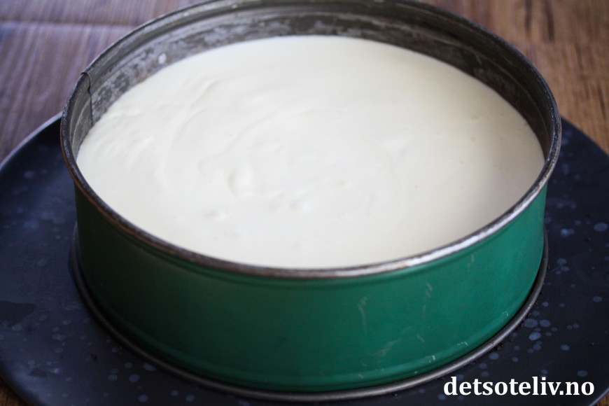 Hell ostefyllet i kakeformen og la kaken stivne i kjøleskapet (4-6 timer).