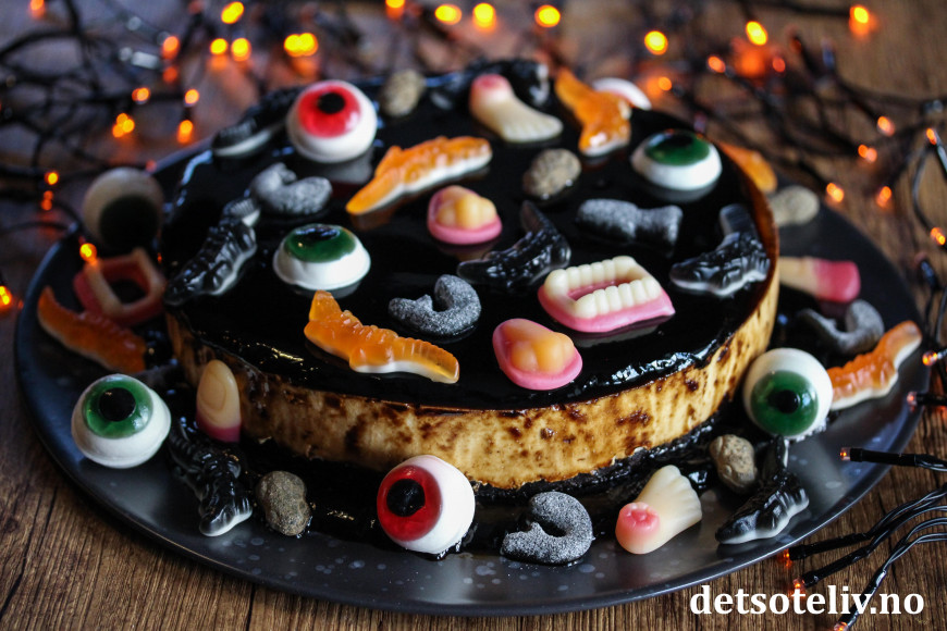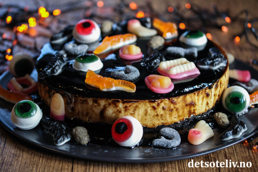 Her har jeg forvandlet en helt basic oppskrift på ostekake til en skikkelig ekkel og skummel ostekake.