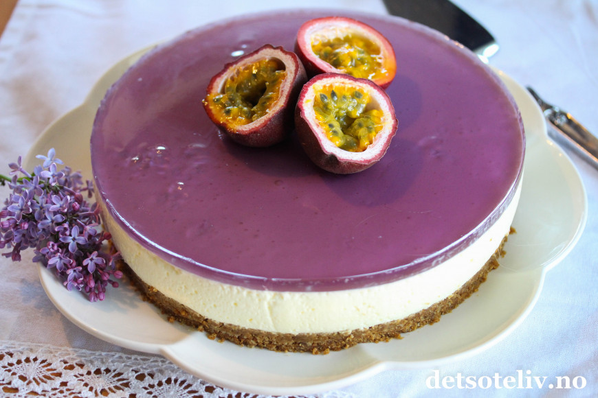 ♥ Pakken med pasjonsfruktgelé fås kjøpt i de fleste matbutikkene. Jeg foretrekker å ha ostefyllet helt lyst og bruker derfor sitrongelépulver der, men resultatet blir bra dersom du bruker pasjonsfruktgelépulver i ostefyllet også.