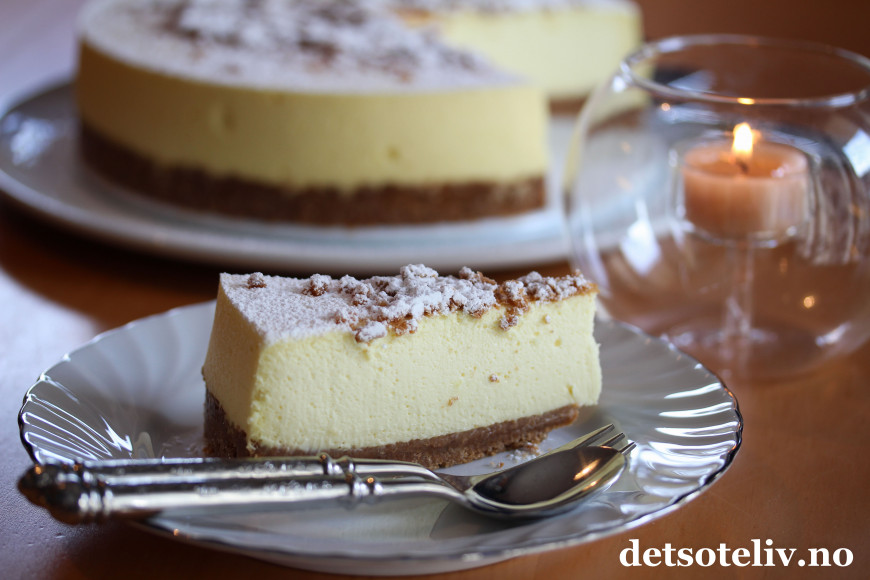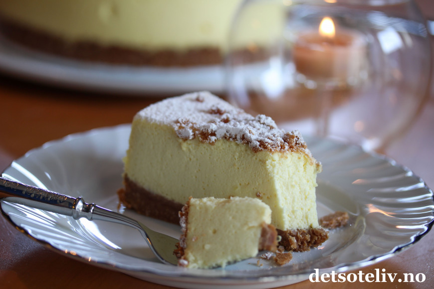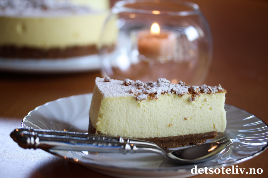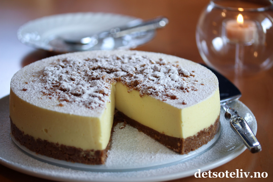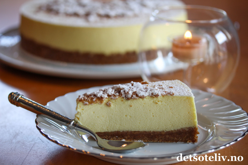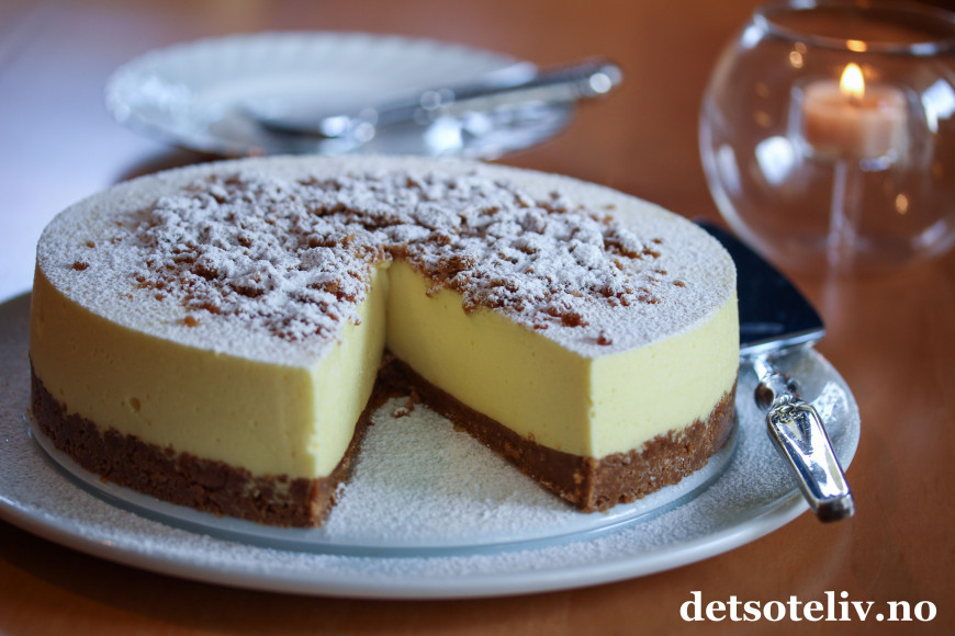 Den kjente, kjære ostekaken får her en nydelig julesmak ved at kjeksbunnen lages med knuste pepperkaker. Ostefromasjen har mild smak av appelsin.