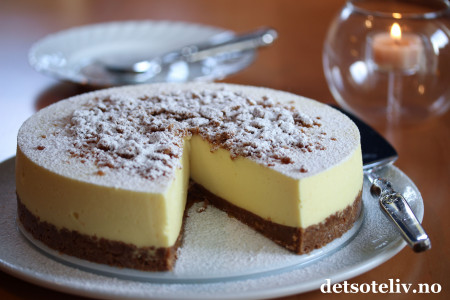 Dette er en kake som passer like godt som dessert etter en god middag som på kakebordet, og det ikke noe i veien for å lage kaken klar et par dager før servering.