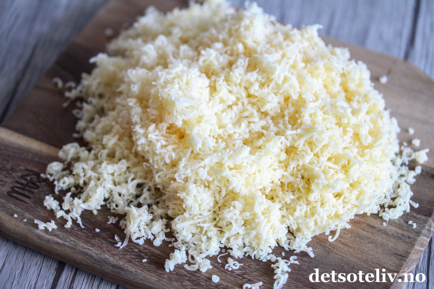 Riv Västerbottensosten. Jeg bruker riveelementet på min food processor, men vanlig rivjern kan såklart også brukes.