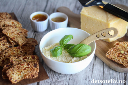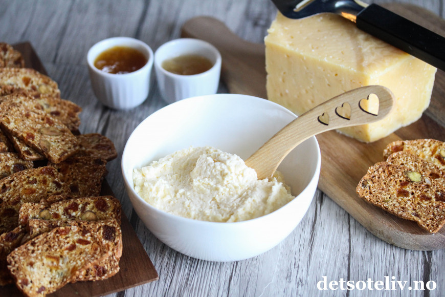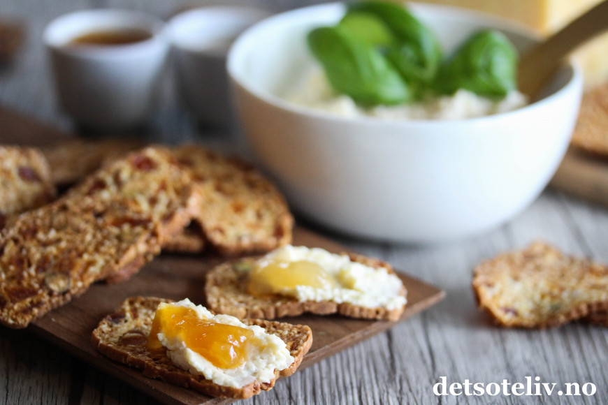 ♥ Server gjerne ostekremen på knekkebrød eller noen gode kjeks. Jeg har her brukt noen sprø kjeks med tørket frukt og nøtter, som smaker fantastisk godt sammen med Västerbottensost.