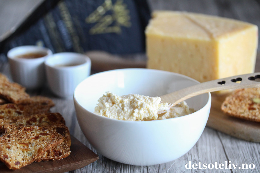 Som en litt artig vri, kan man rive Västerbottensosten og blande med crème fraîche for å lage en smørbar ostekrem.