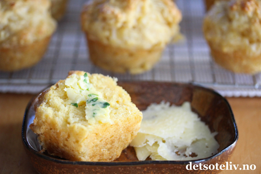 Ostemuffins blir myke og veldig smakfulle, særlig når du lager dem med en litt kraftig ost slik som Västerbottensost.
