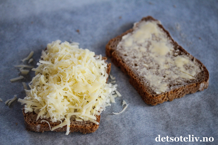 Oppskriften gir 2 doble ostesmørbrød.