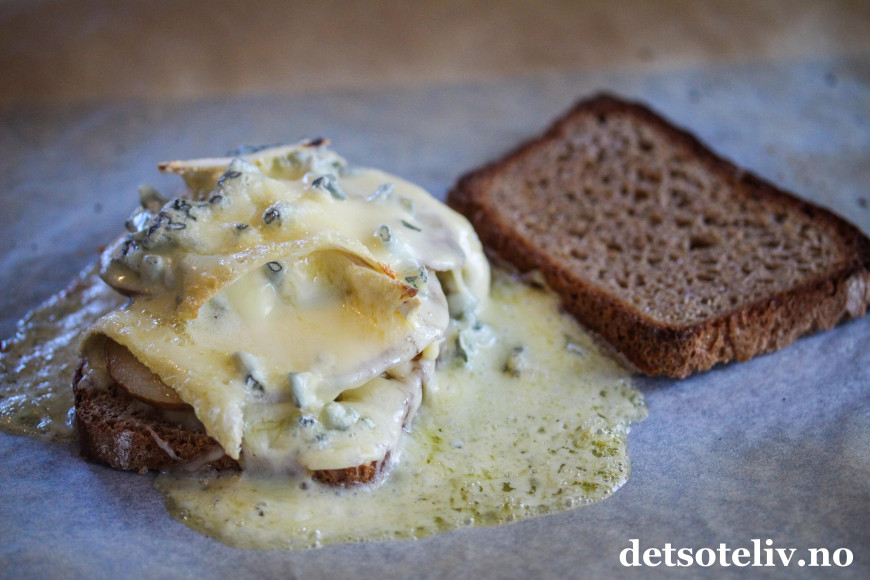 Da bør du lage deg noen skikkelig gode ostesmørbrød med pære og blåmuggost! Jeg har brukt osten Cambozola, som har mild smak og som er perfekt for oss som er glade i smaken av blåmuggost uten at den blir for utpreget. Cambozola produseres i Bayern i Sør-Tyskland, og minner på mange måter om en krysning mellom fransk camembert og italiensk gorgonzola. En kombinasjon av hvit- og blåmuggost som rett og slett er supergod!