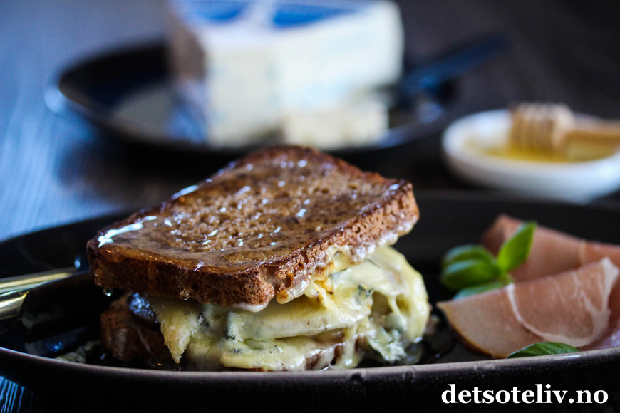 Hell over rikelig med flytende honning, og server ostesmørbrødene varme - gjerne med spekemat som tilbehør.