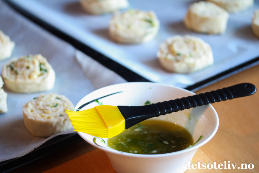 Pensle over snurrene med resten av urtesmøret.