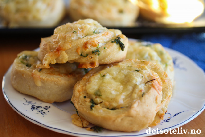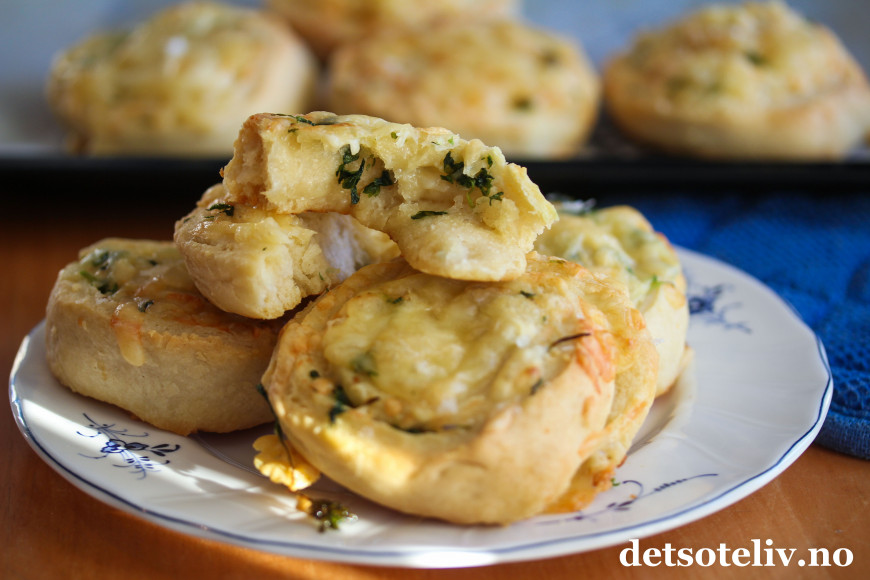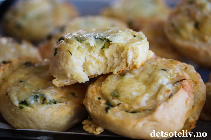 Det er utrolig mye gode smaker i disse ostesnurrene! Jarlsberg harmonerer veldig godt med den deilige smaken av hvitløk og krydderurter…