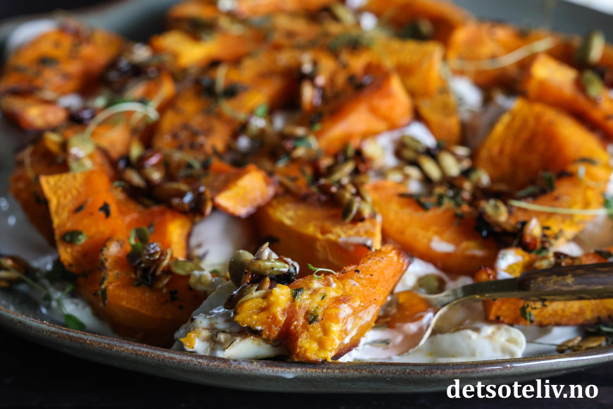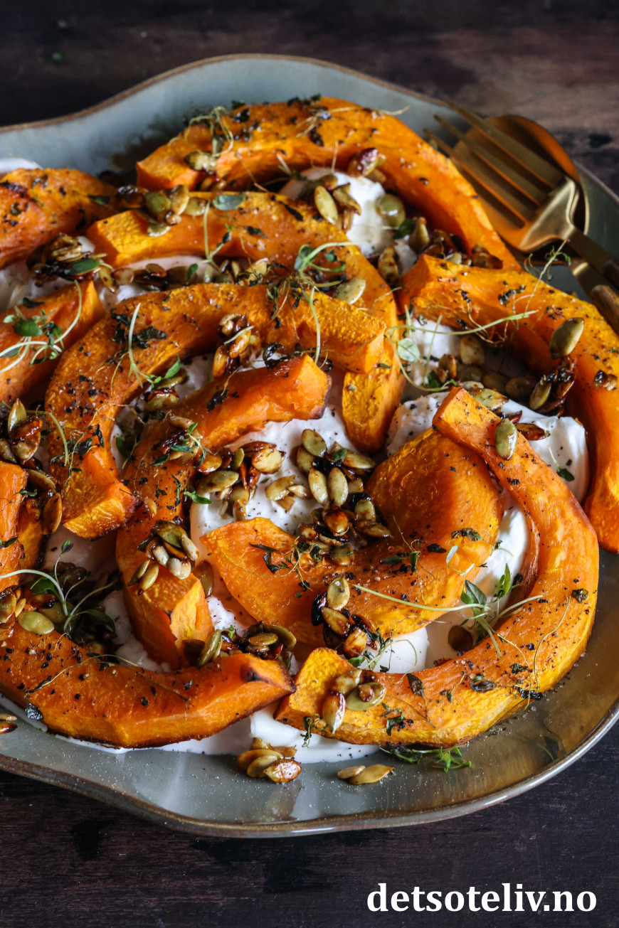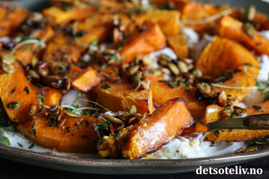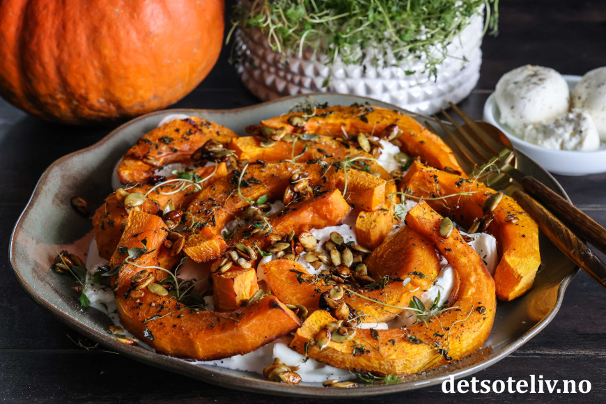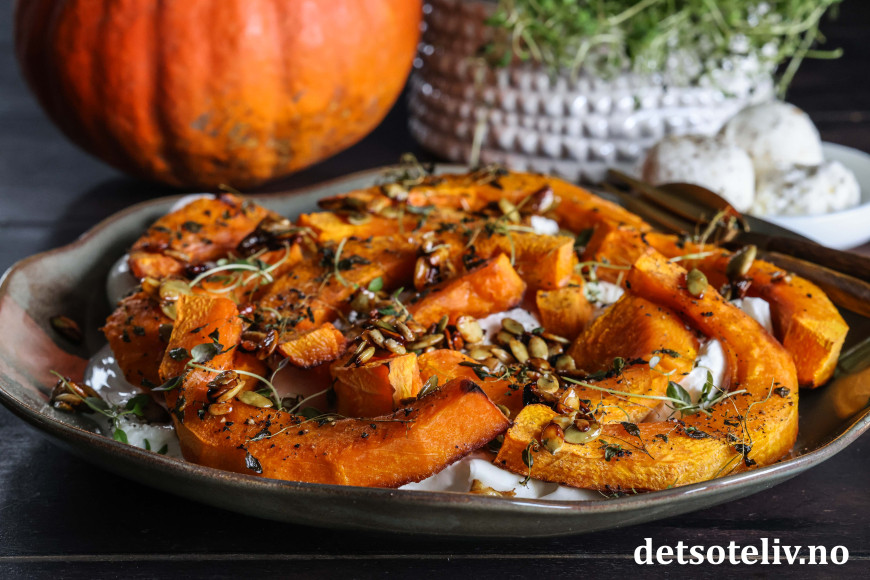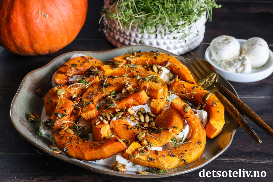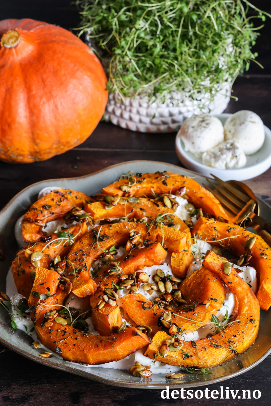 Ovnsbakt gresskar med burrata er en herlig og høstlig rett.