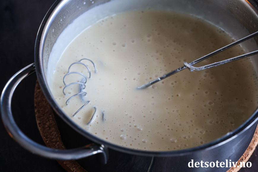 Lag imens sausen ved å ha 2 dl silt kraft i en kjele sammen med kremfløte og maisenna.