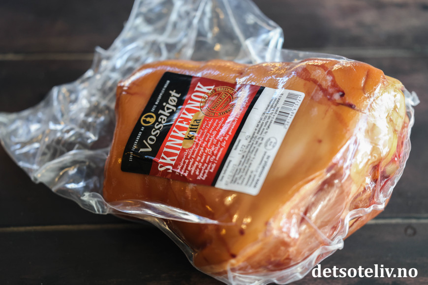 ♥ Det er jo god plass i langpannen, så derfor ovnsbaker jeg alltid 2 svineknoker når jeg først er i gang. 1 knoke er på ca. 1,5 kg, men husk at det er mye fett og skinn som må renses vekk, så det er ikke så mye kjøtt på en knoke som vekten skulle tilsi. Kjøtt du får til overs kan renses og legges i fryses. Kan for eksempel brukes i Grønnsaksuppe eller Gul ertesuppe.