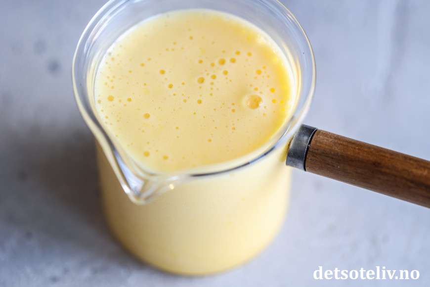 Det er mye deilig kraft i fiskeformen, så personlig synes jeg det ikke er nødvendig å lage hollandaisesausen.