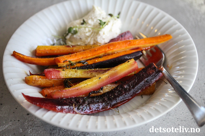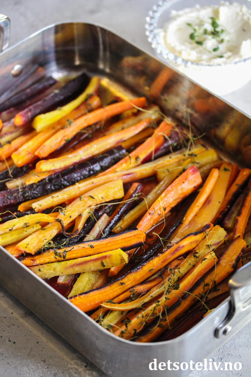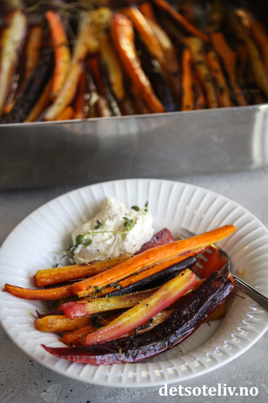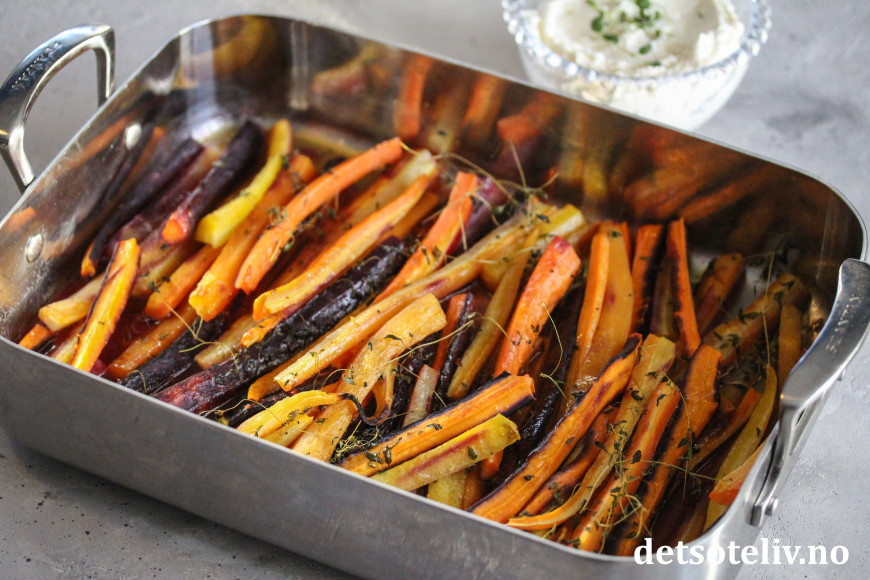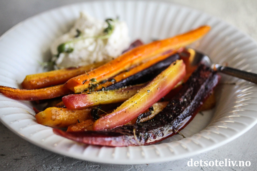 Jeg liker å smuldre fetaost eller chèvre over de ferdigbakte gulrøttene, eller å servere dem sammen med en kjempegod fetakrem.