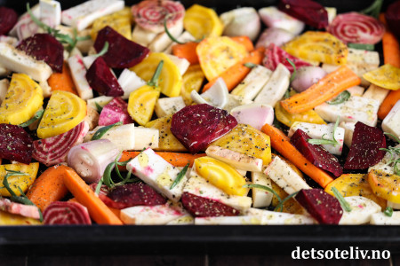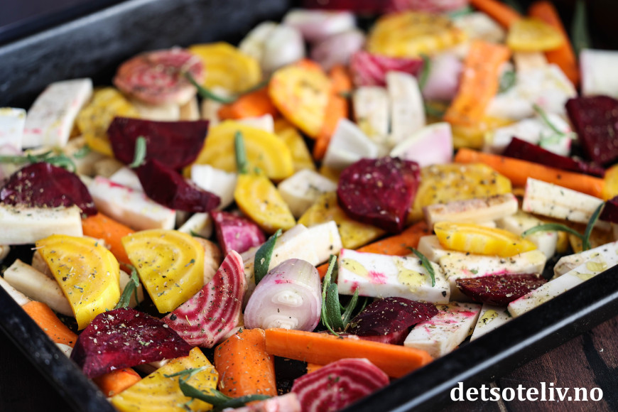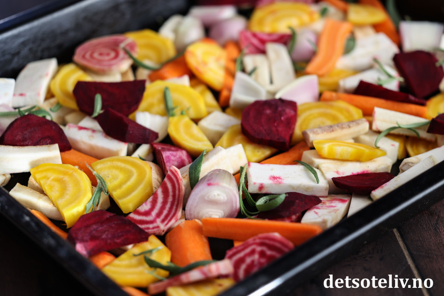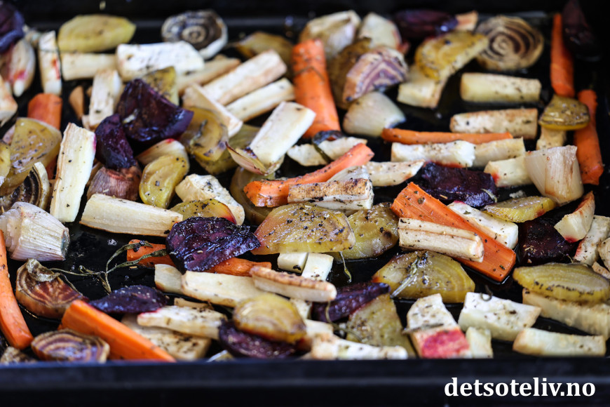 Ovnsbakte rotgrønnsaker er herlig tilbehør til mange slags middager!
