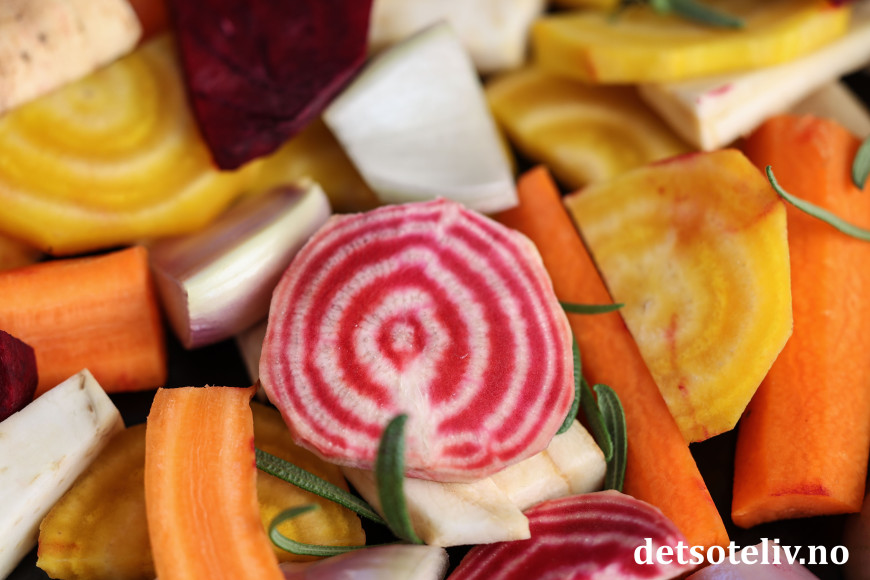 Du kan bruke det utvalget av rotgrønnsaker du har for hånden, så oppskriften nedenfor er kun veiledende.