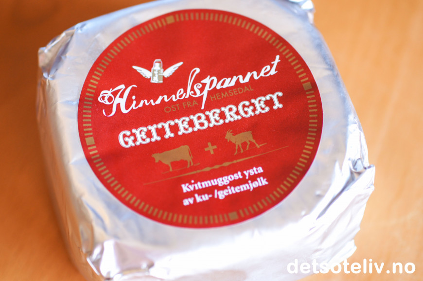 Geiteberget er en helt spesiell ost siden den er laget med 60% kumelk og 40% geitemelk - en hvitmuggsost som har lignende konsistens som camembert, men som smaker litt som mild chevre kan man kanskje si...