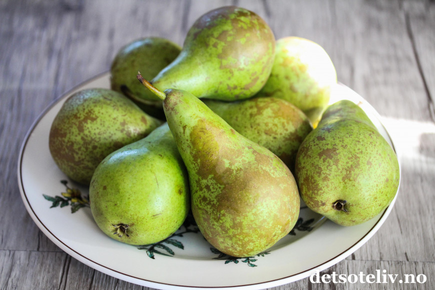 Her har jeg laget en høstlig variant med pærer, valnøtter og honning.