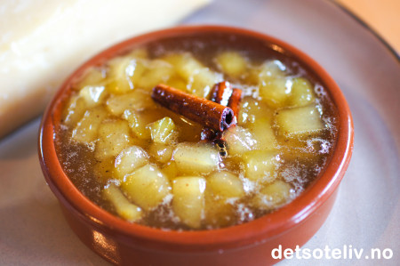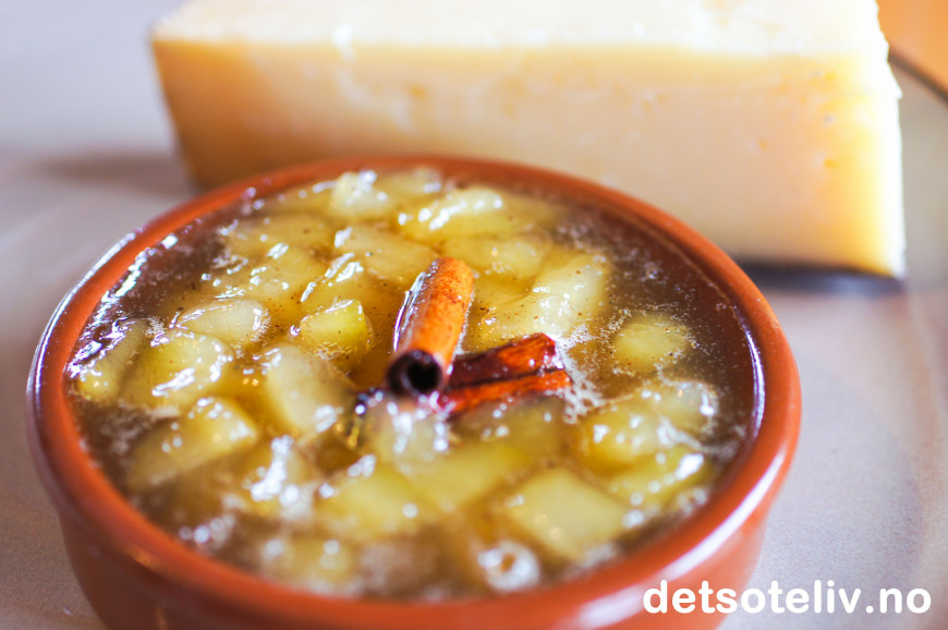 Ta kjelen av platen og avkjøl pæremarmeladen før servering sammen med oster.
