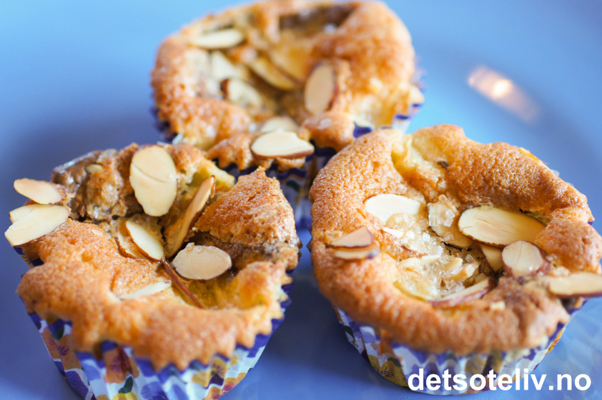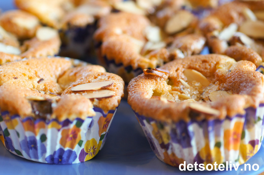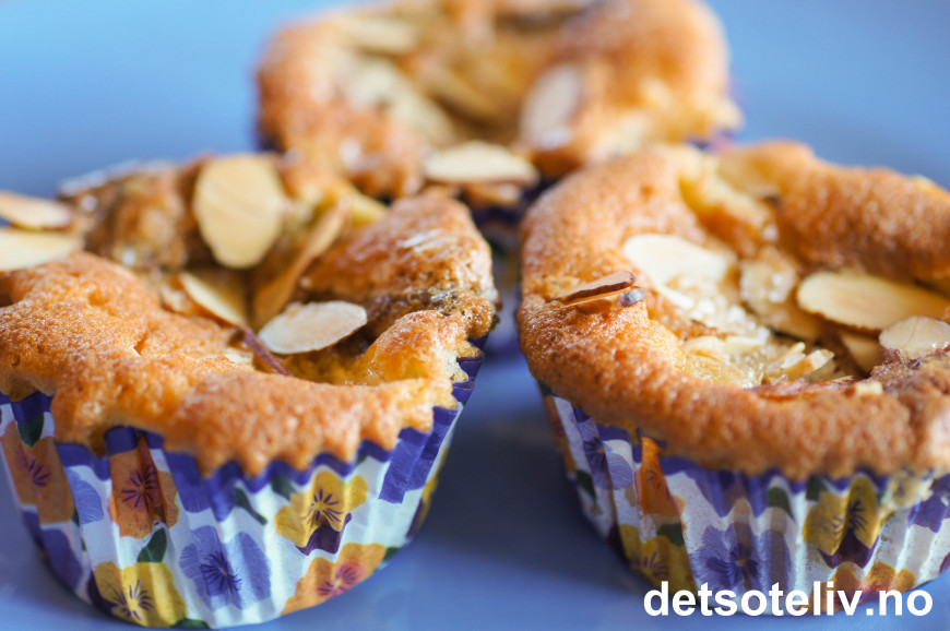 I dag vil jeg vise deg noen utrolig nydelige, myke pæremuffins som inneholder mye godt: sjokoladebiter, krydder, mandelflak og perlesukker.