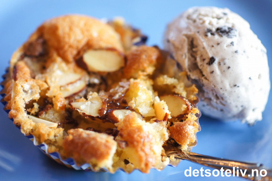 Nevnte jeg at muffinsene smaker best varme med iskrem til...? Velg gjerne vaniljeiskrem med sjokoladebiter;-)