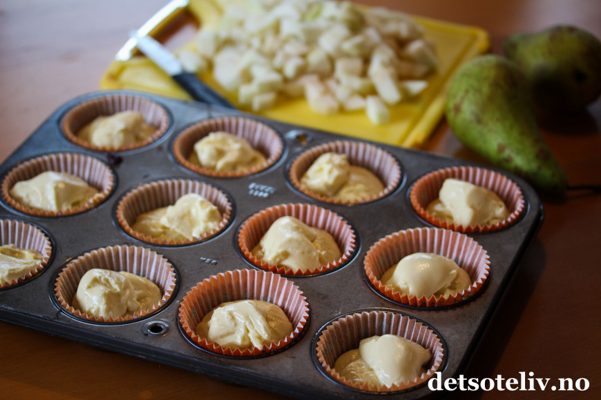 Håper du fikk lyst på noen nystekte pæremuffins nå...