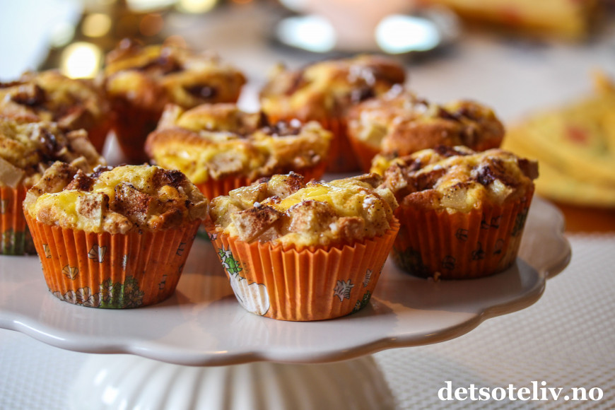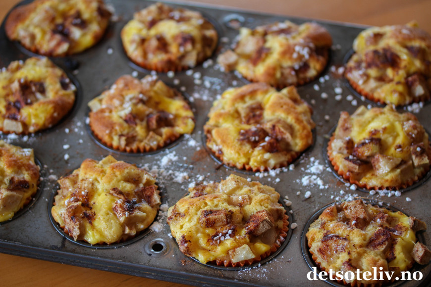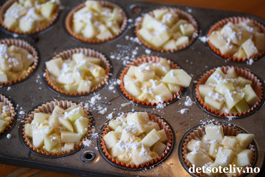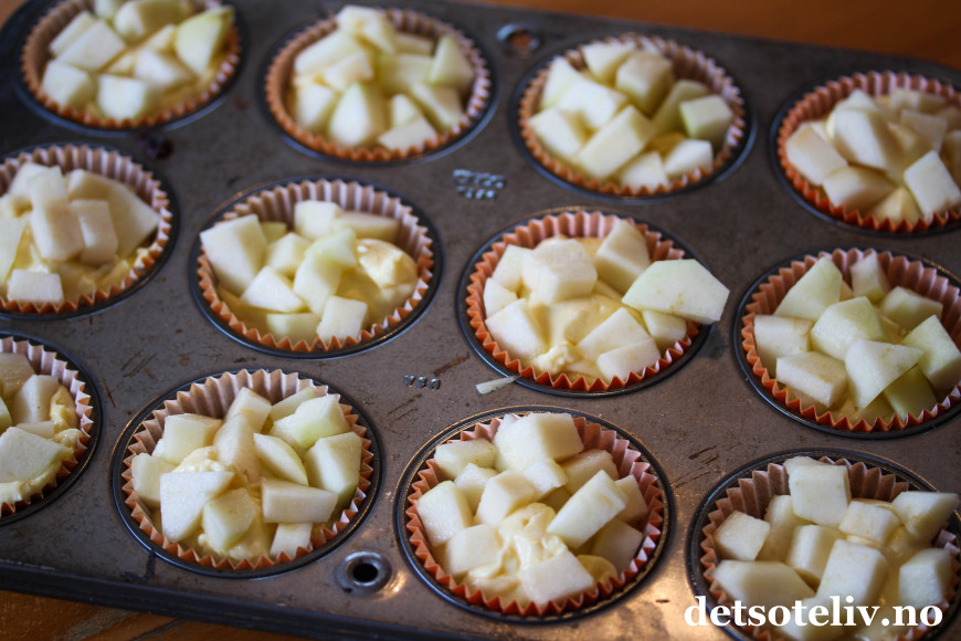 Stek muffinsene midt i ovnen ved 225°C i 15-20 minutter, eller til de er gjennomstekte og gylne.