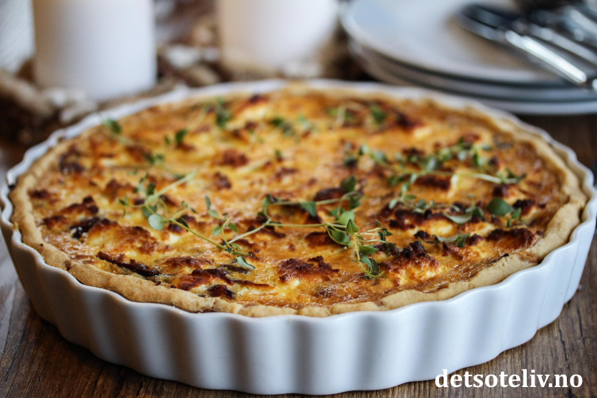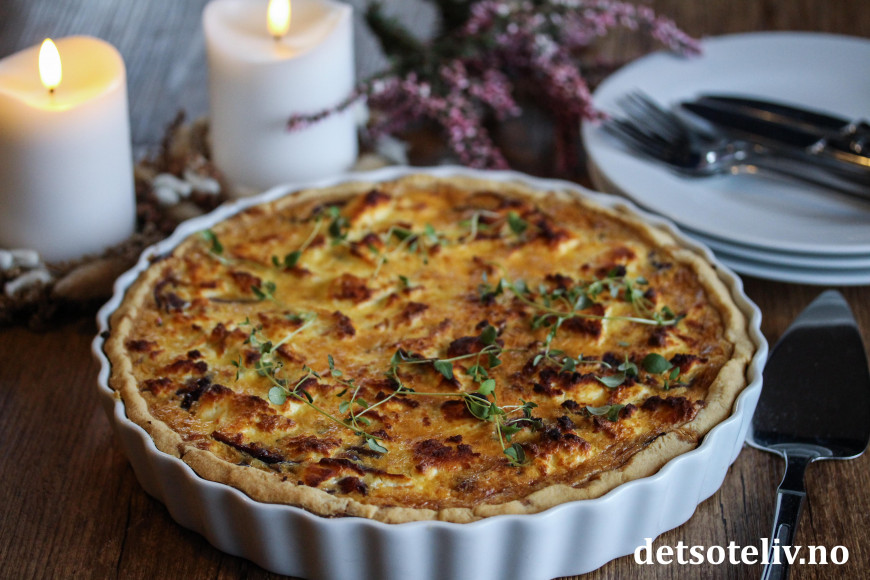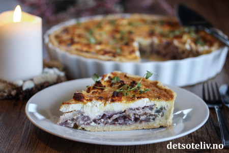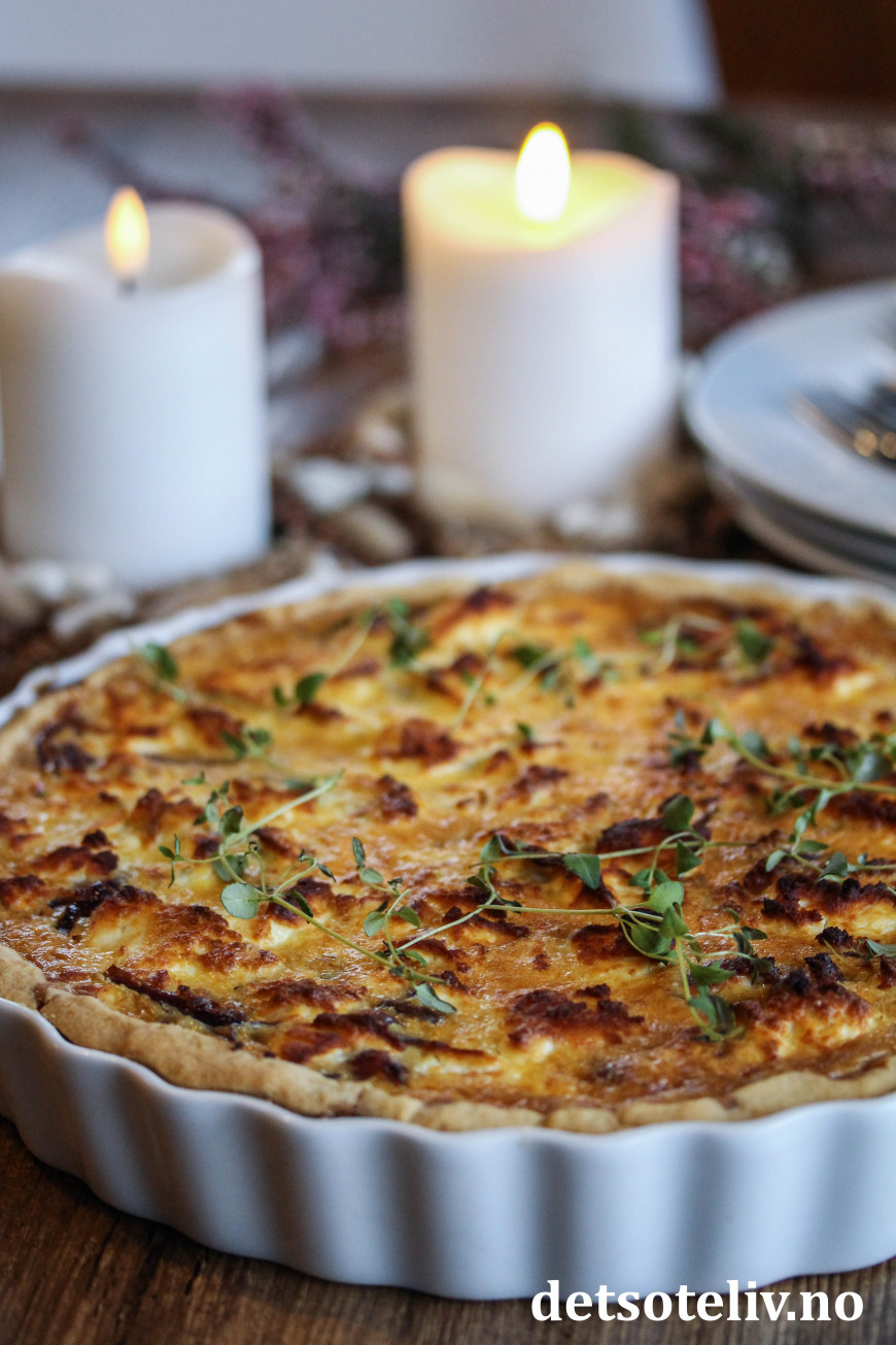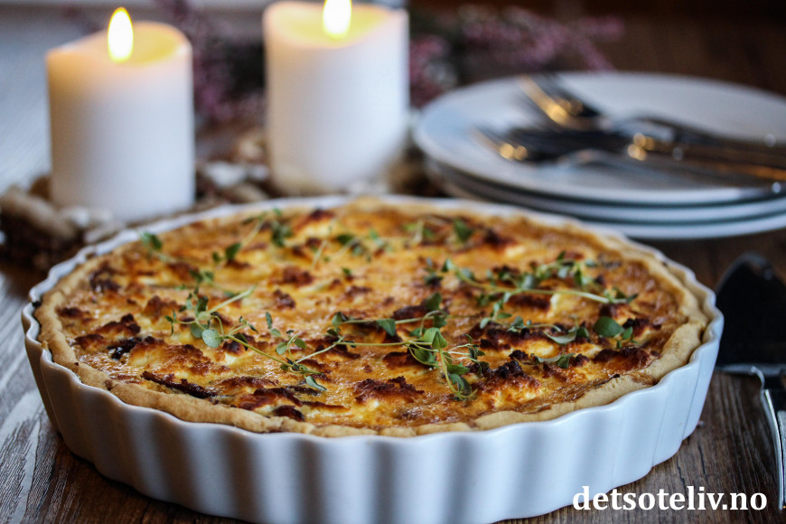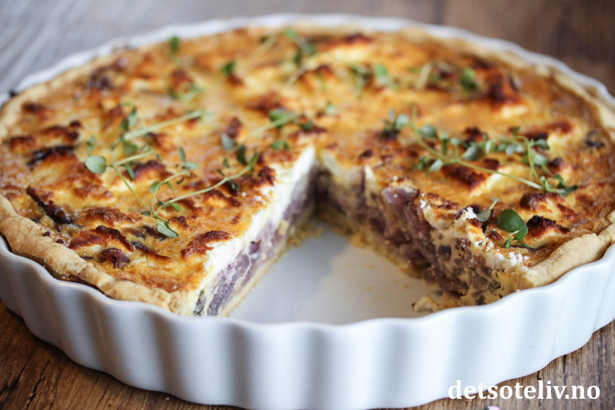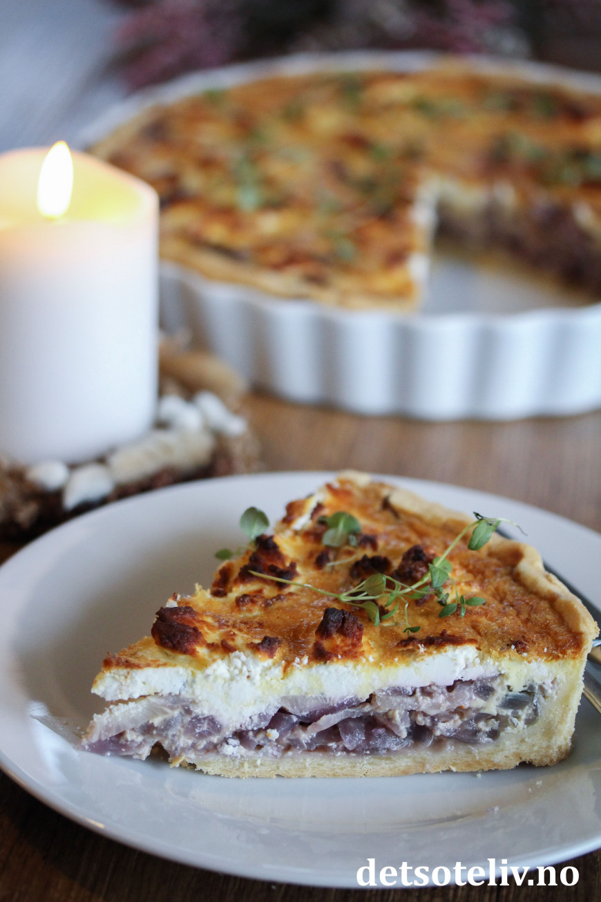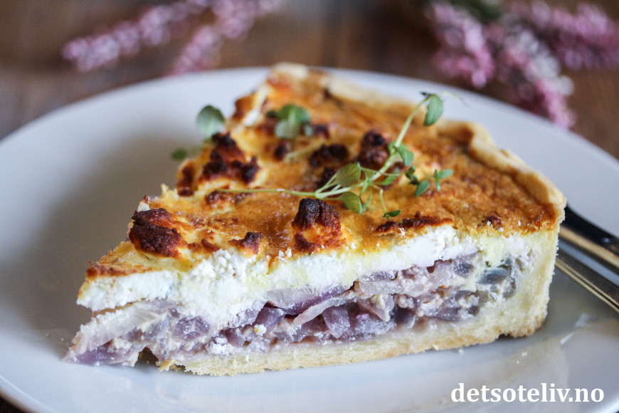Denne nydelige paien her for eksempel, med hvitvin- og honningsyltet rødløk, egg, fløte, fersk timian og masse chèvre... OMG, sååå god! ♥