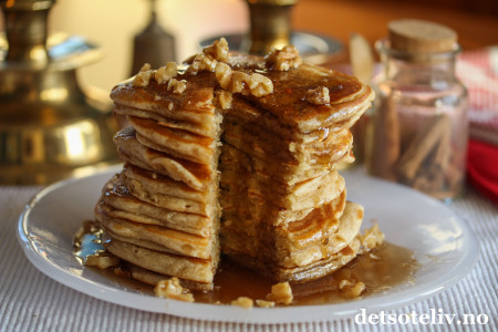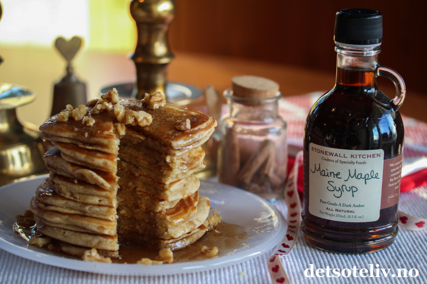 ♥ Ekte, amerikansk lønnesirup (Maine Maple Syrup) fra Stonewall Kitchen smaker fantastisk godt til disse pepperkakekrydrede pannekakene.