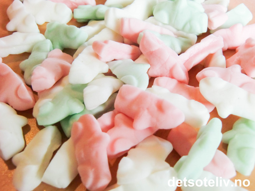 ♥ Bilene gir kun svak pastellfarge. Vil du ha sterkere farge, kan du tilsette littegrann konditorfarge.