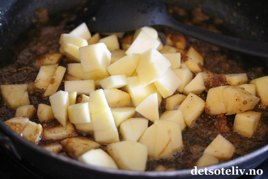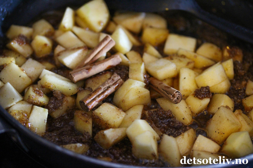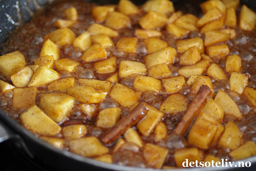 La dette smelte og ha så eplebitene i stekepannen sammen med sitronsaft.