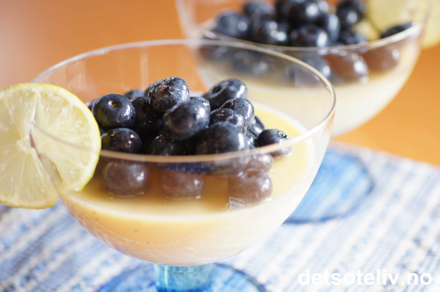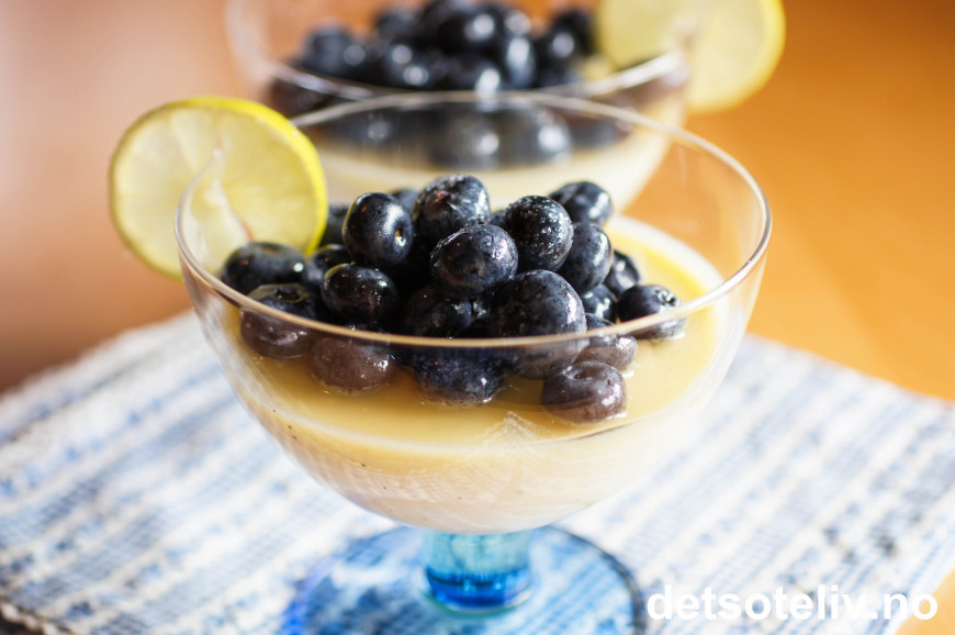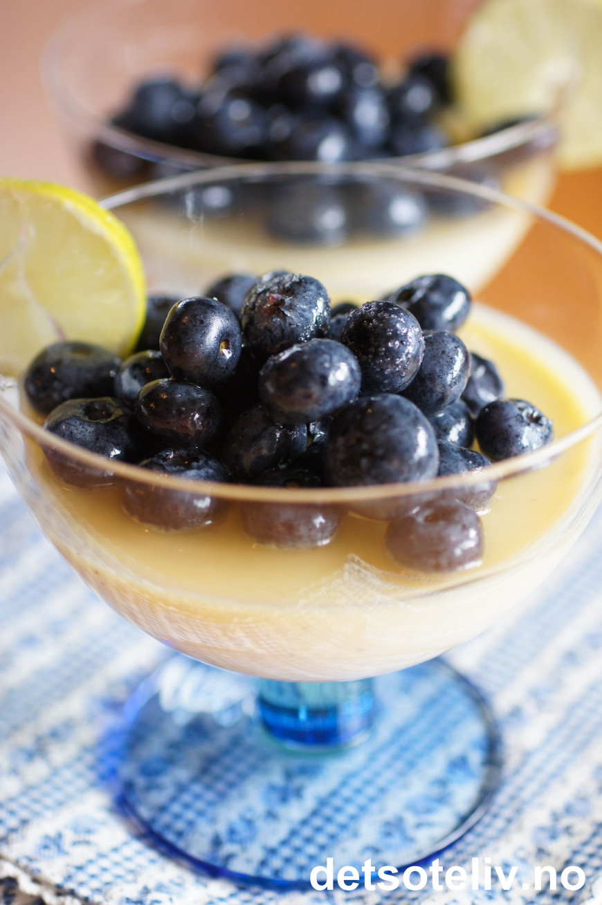Panna cotta betyr "kokt fløte" på italiensk og blir nokså tykk og kremete når den lages med bare kremfløte sånn som her. Jeg synes dette er deilig når tilbehøret er blåbær og limesaft. Andre ganger kan det være ønskelig å lage en litt mindre kremete variant, og i så fall er det bare å bytte ut deler av kremfløten ut med melk eller lettere fløtevarianter.