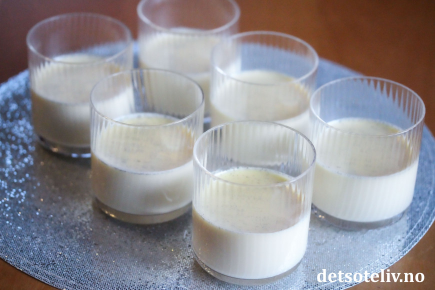 glass eller dessertskåler. Sett i kjøleskapet i noen timer (eller over natten) til panna cottaen har stivnet.