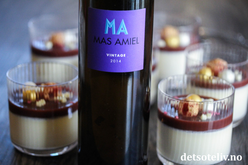 Kremete panna cotta med vanilje som toppes med et lag søt gelé som inneholder sterkvinen Mas Amiel... 😍