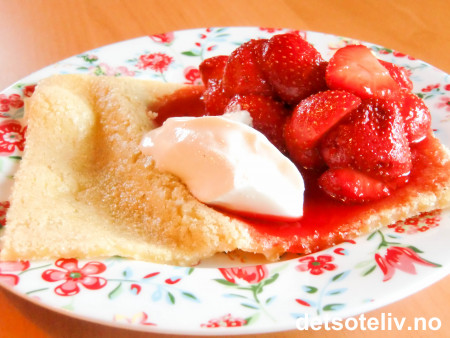 Fantastisk nydelig med en klatt rømme og masse rørte jordbær.