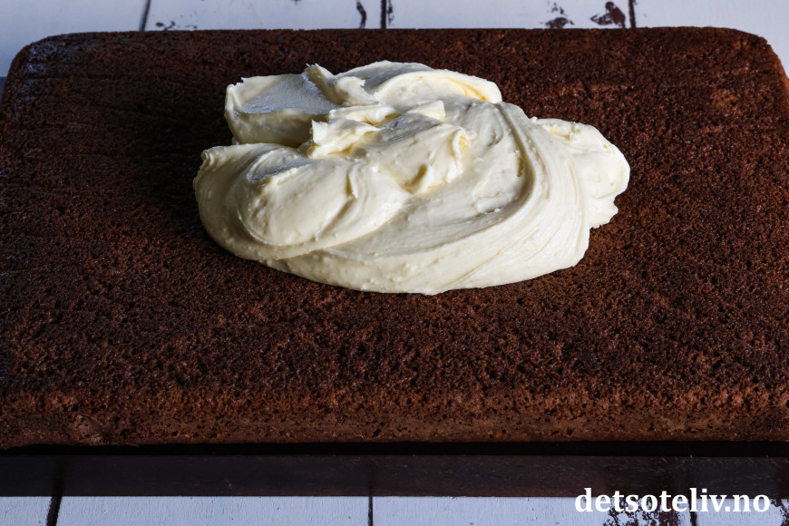Stek kaken midt i ovnen ved 200°C i ca. 20 minutter (sjekk med kakenål at kaken er gjennomstekt).