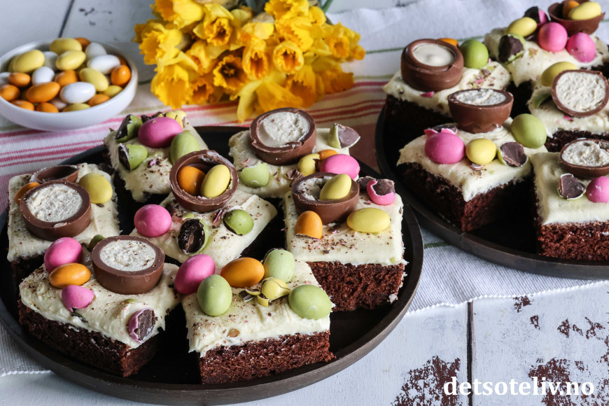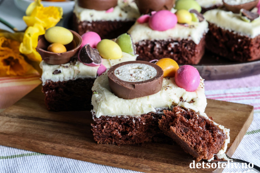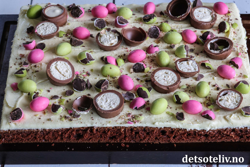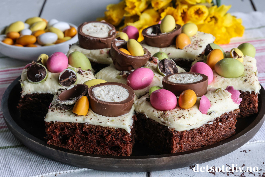 Dette er en herlig sjokoladekake i langpanne som passer perfekt til påske!