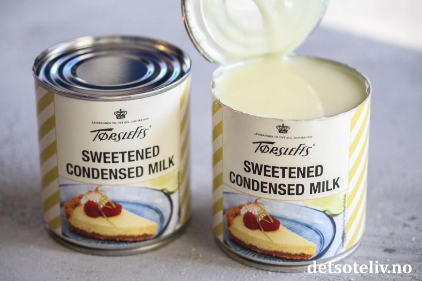 ♥ Til melkekremen er det viktig at du bruker søtet, kondensert melk (som er tykk og lysegul i fargen). 1 boks inneholder ca. 400 gram, så du bruker 1 boks til denne oppskriften.