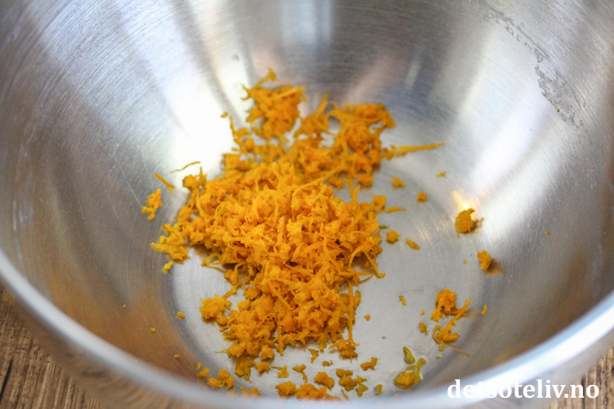 Riv av det ytterste skallet på appelsinene med et grovt rivjern.
