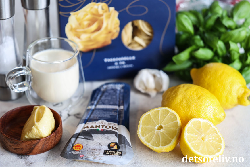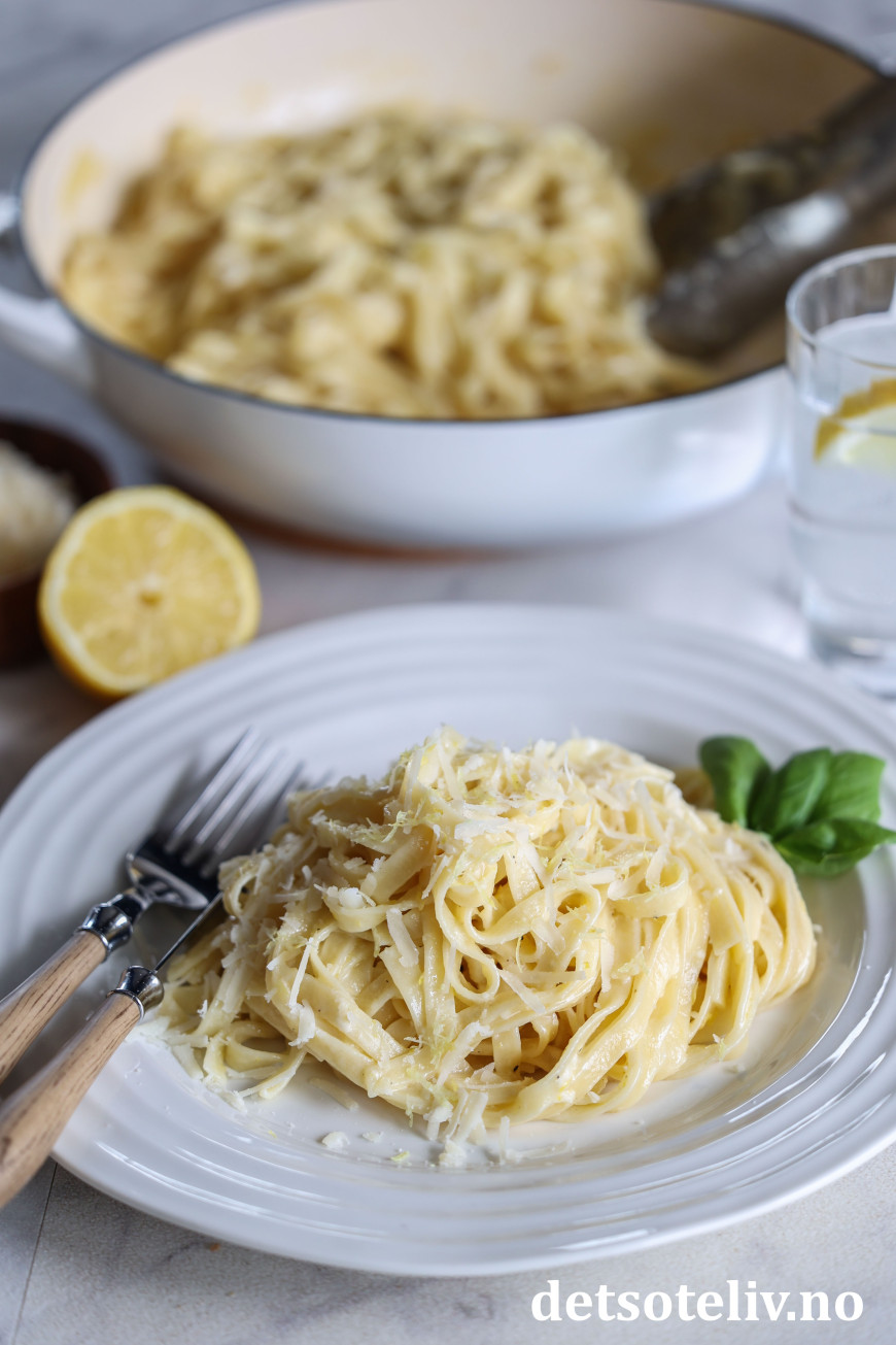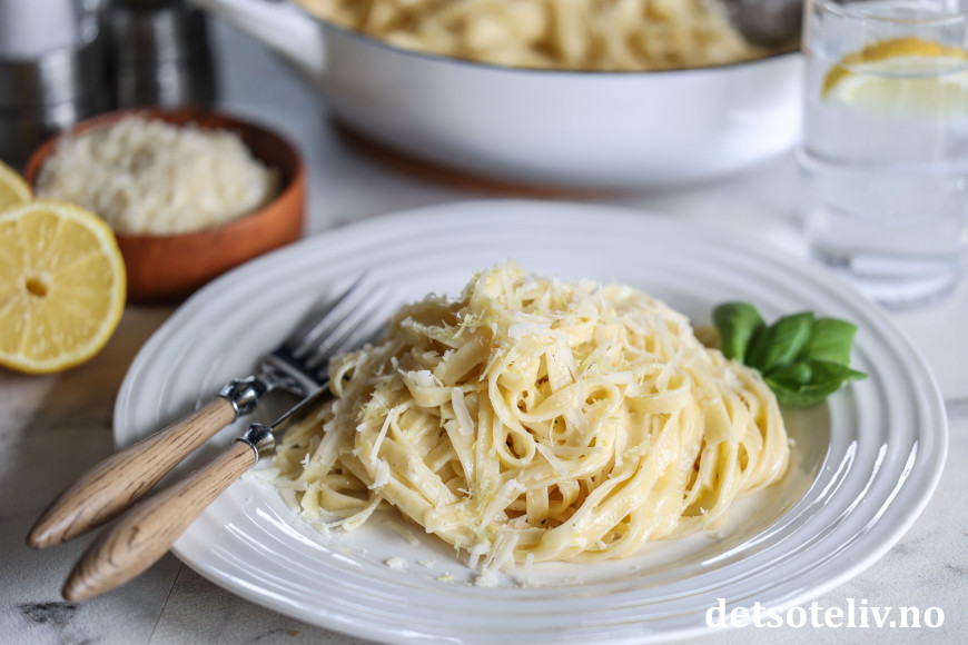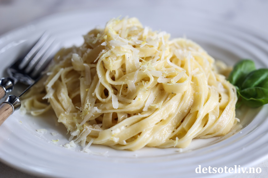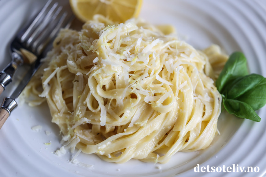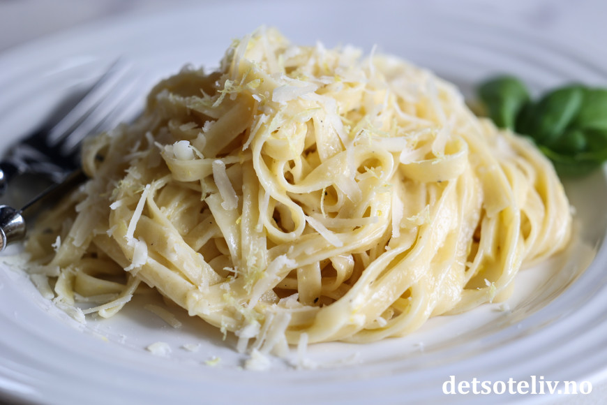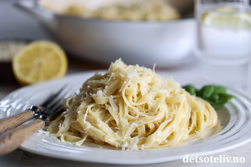 Pasta al limone ("pasta med sitron") kan lages med og uten kremfløte.