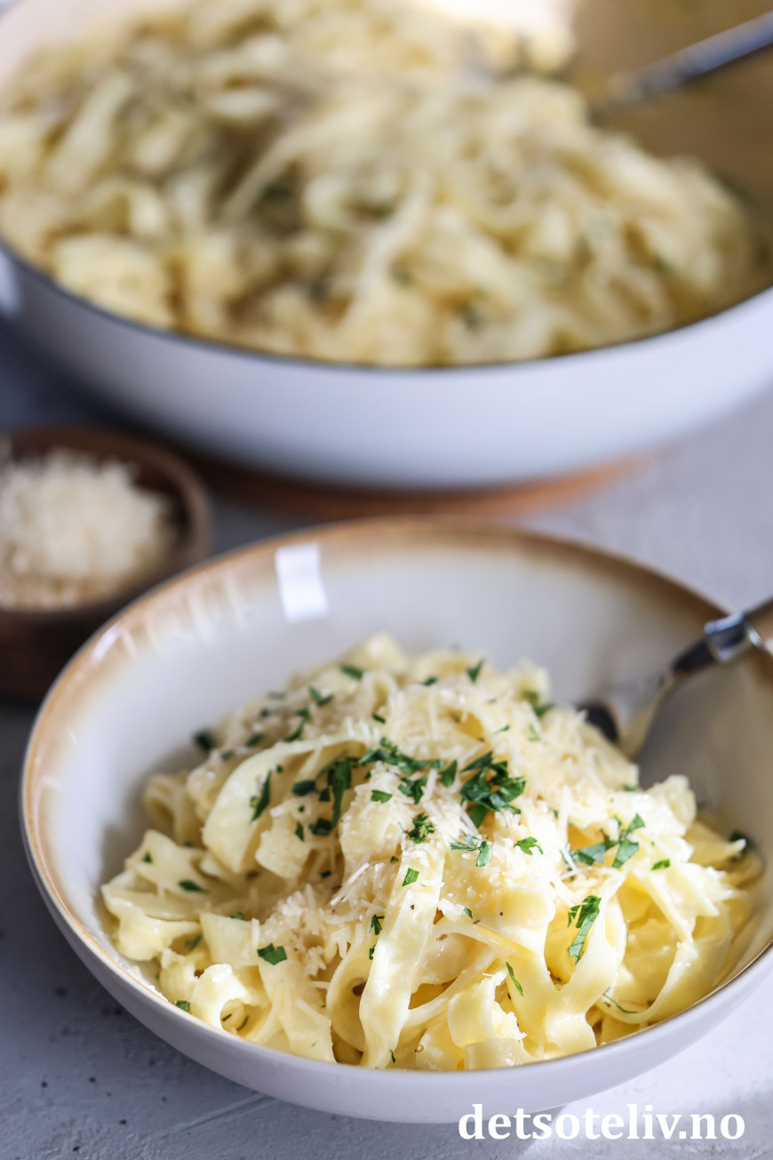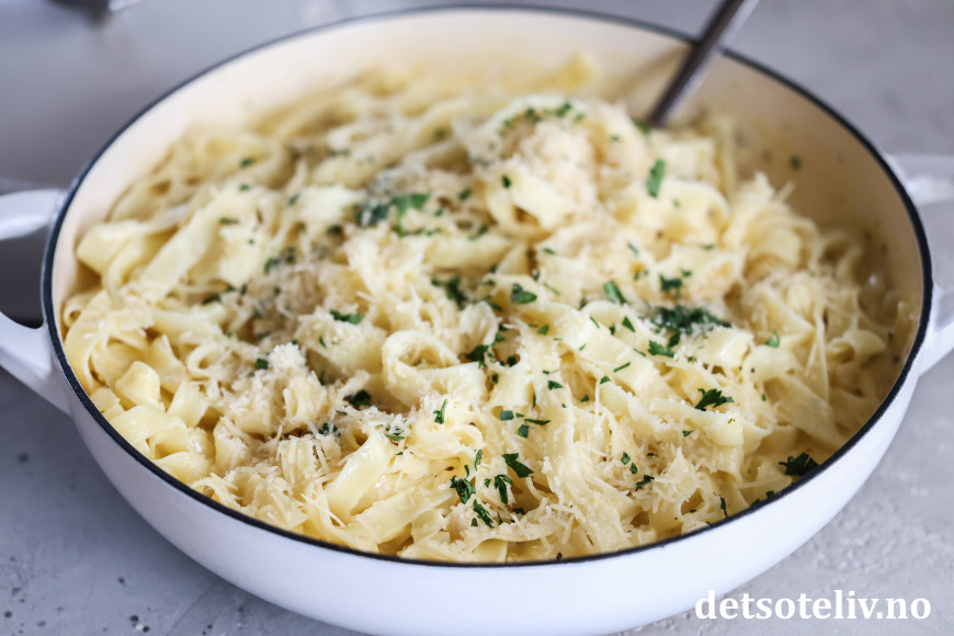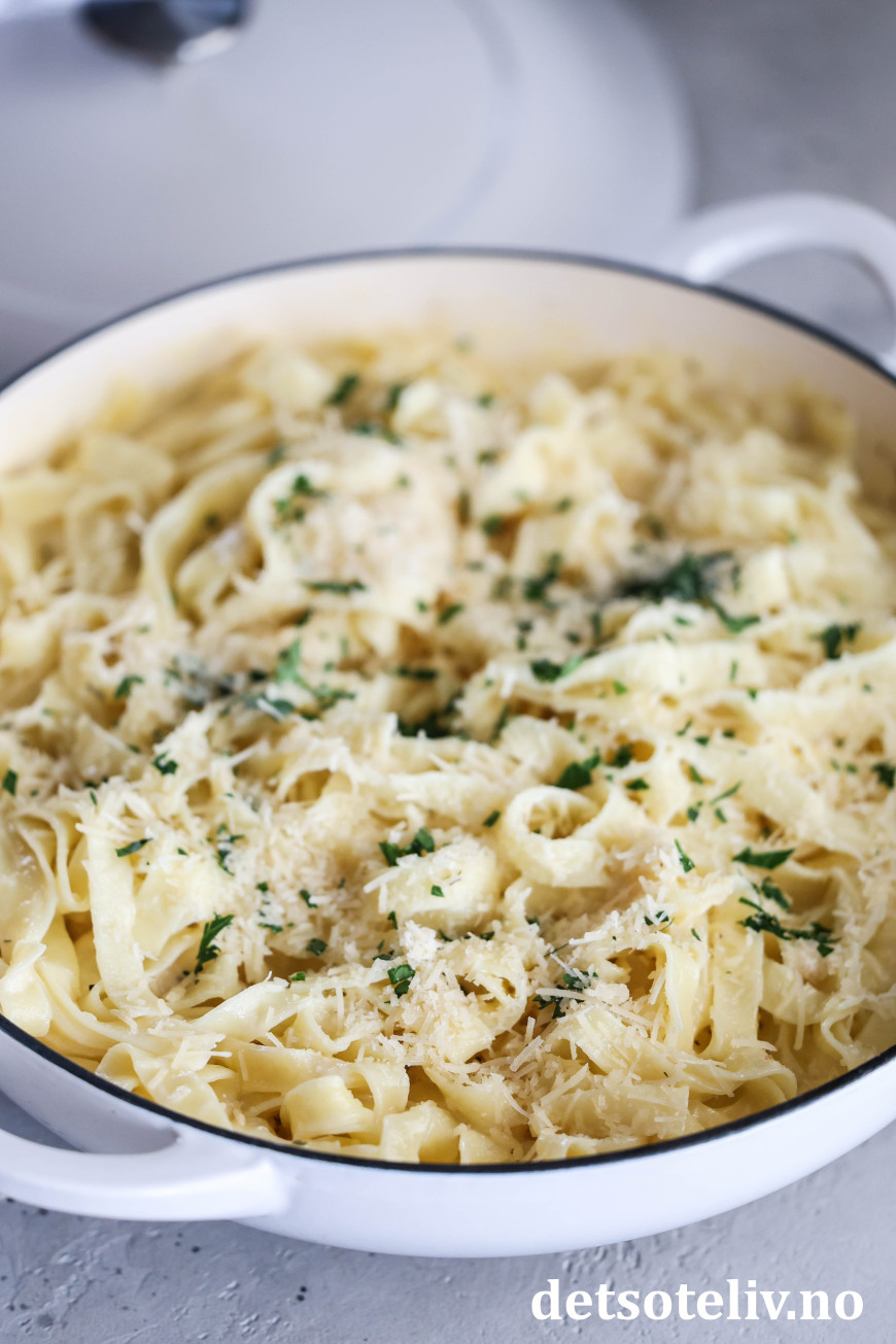 Pasta med smør, hvitløk, fløte og parmesan - dette er skikkelig deilig comfy food! 😍