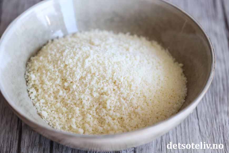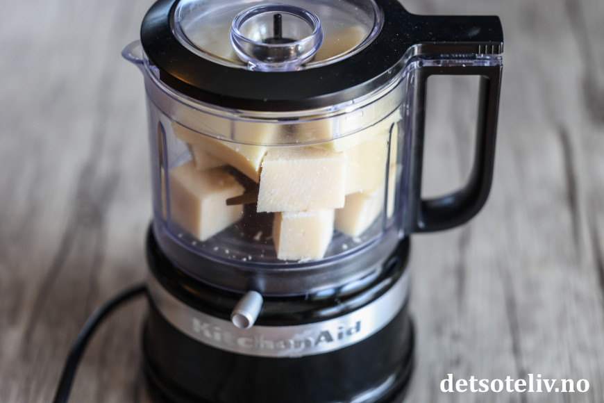 Riv osten fint. Jeg bruker en liten food processor til dette, men du kan også bruke fint rivjern.